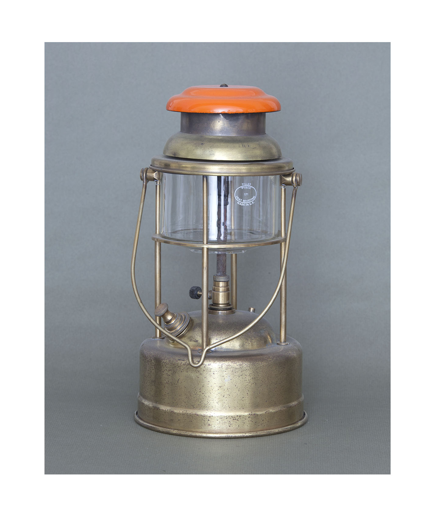 Tilley Pork Pie, Typ 1 mit kurzem Henkel, poliertes Messing, neuer Haubendeckel, um 1941