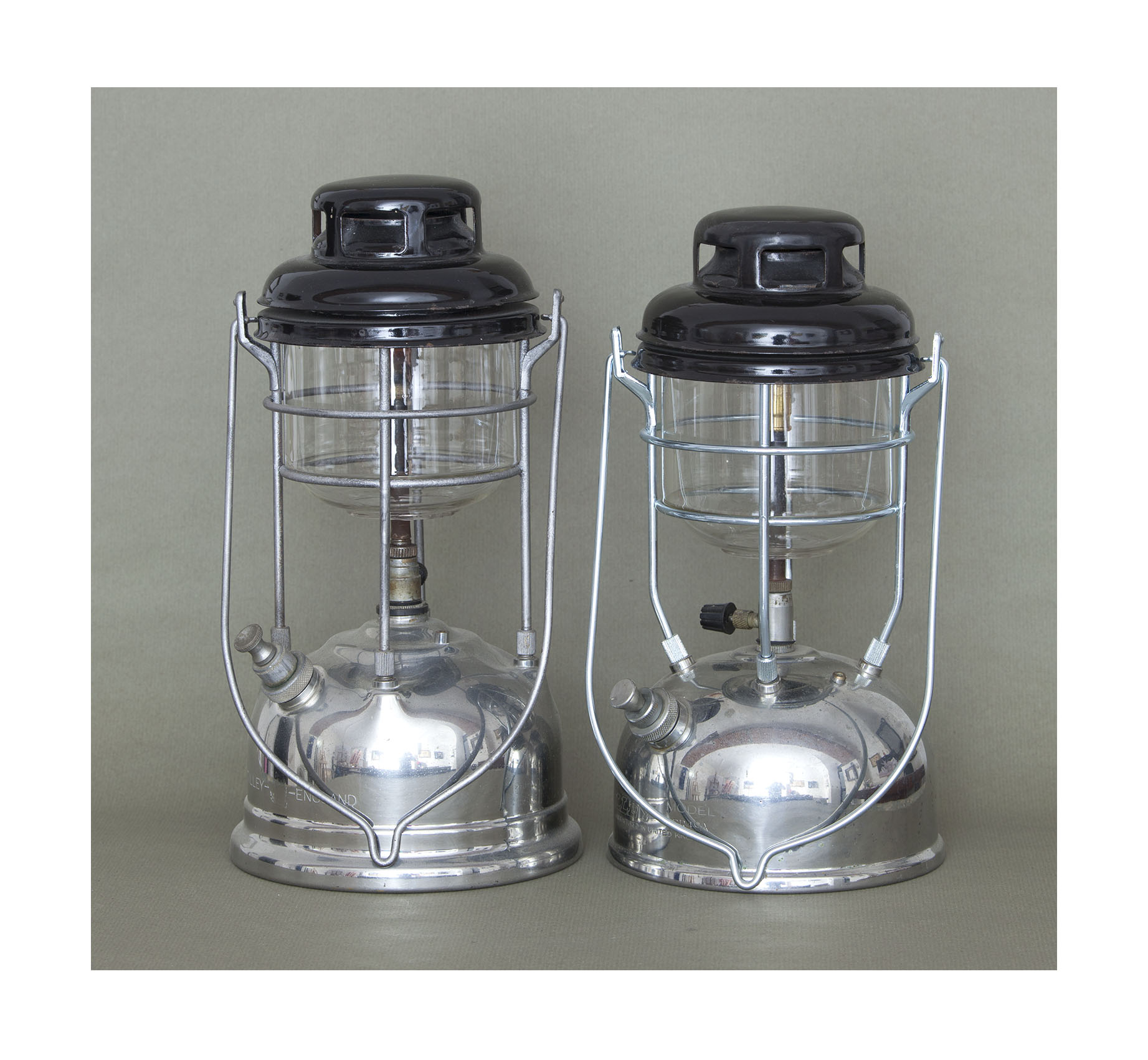 Tilley Guardsman und X246A, verchromt, Exportmodelle, um 1952 und 1960