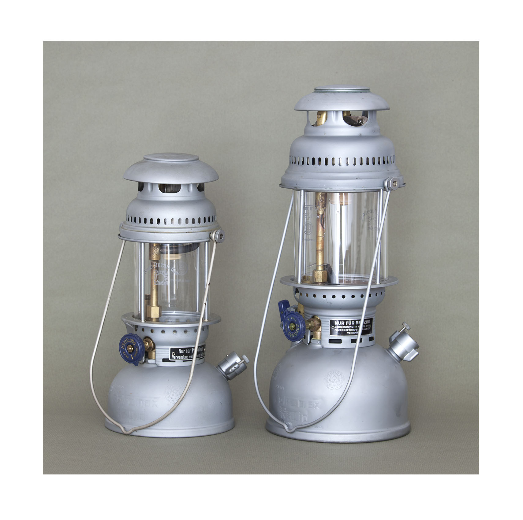 Petromax 250 und 500 der Bundeswehr, NOS, matt vernickelt, um 1960